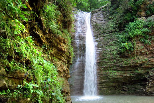 Особенно впечатляет скала Парус, покрытая густым ковром колхидского плюща. Преодолевая нагромождения и лабиринты глыб, тропа приводит к двухъярусному каскаду водопадов «Девичьи косы». Это место отмечено особой красотой.